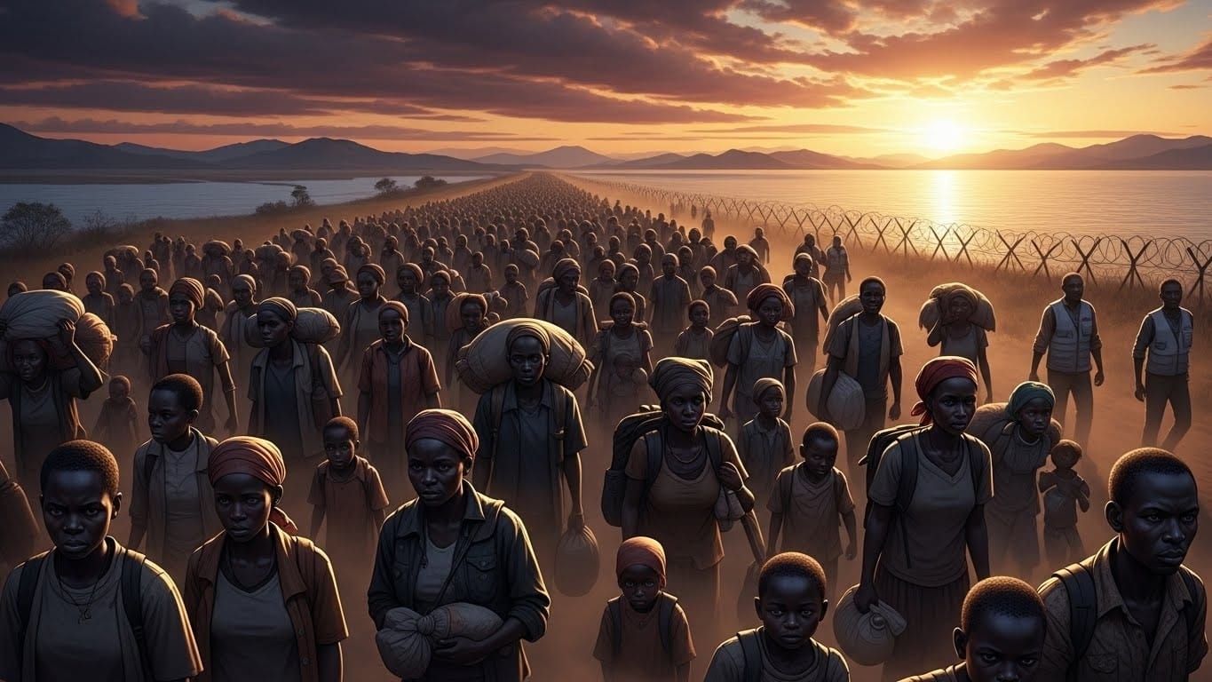 Des mères portent leurs enfants sur le dos pendant des kilomètres. Des vieillards marchent avec difficulté, soutenus par des plus jeunes. Les pirogues traversent le lac Tanganyika à la nuit tombée pour échapper aux patrouilles. Toute la journée, la frontière ressemble à une longue file humaine qui avance, inlassable, vers un espoir fragile.