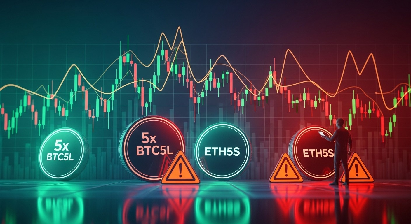 C’est là que les tokens à levier multiple entrent en scène. Sur des plateformes centralisées, des produits comme BTC5L, ETH5S, SOL5L ou XRP5L permettent d’obtenir une exposition quintuplée sans les complexités du trading sur marge traditionnel. Pas de risque de liquidation forcée, pas de gestion constante des collatéraux : tout est géré via des contrats perpétuels en arrière-plan.