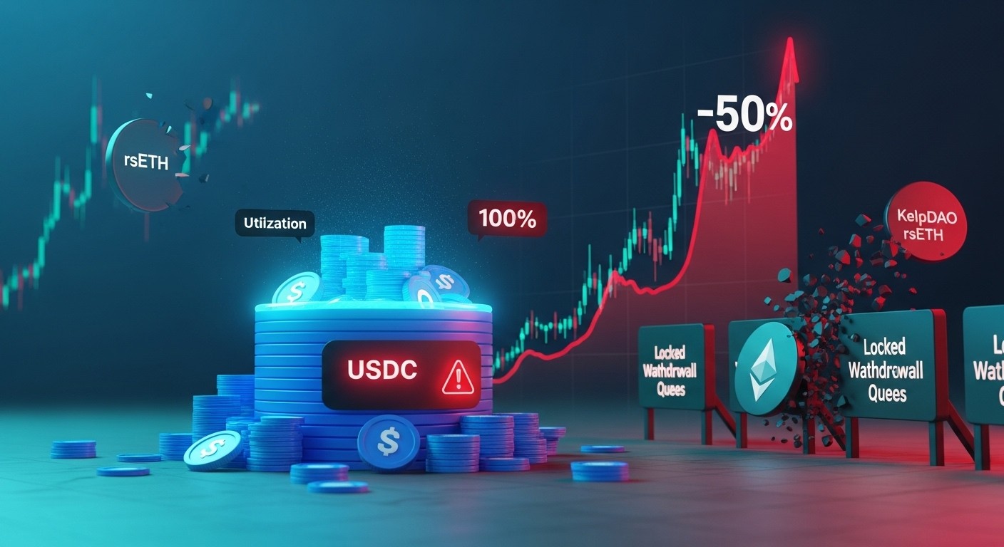 Imaginez un marché financier où des milliards de dollars sont temporairement prisonniers, incapables de bouger malgré la volonté des déposants. C’est précisément la situation que traverse actuellement le pool USDC sur Aave v3, l’un des protocoles de lending les plus importants de l’écosystème DeFi. Suite à un incident majeur impliquant le token rsETH de KelpDAO, la liquidité s’est asséchée de manière spectaculaire, poussant l’utilisation du pool à des niveaux critiques proches de 100 % pendant plusieurs jours consécutifs.