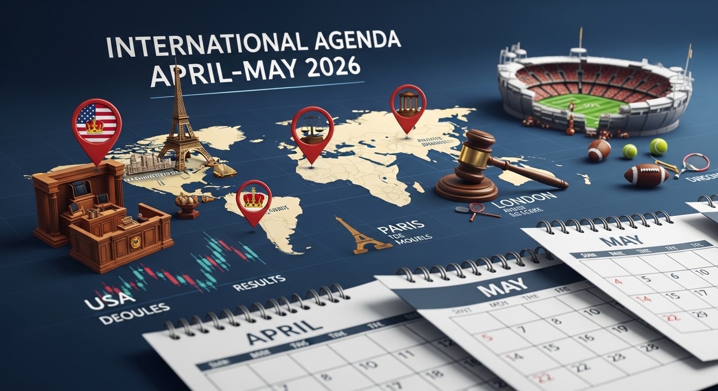 Imaginez un mois où la diplomatie royale rencontre les arcanes de la justice, où les marchés financiers vibrent au rythme des résultats d’entreprises et où le sport offre des affrontements épiques. Entre le 27 avril et le 26 mai 2026, l’actualité internationale s’annonce particulièrement dense, mêlant enjeux politiques, économiques, culturels et sportifs. Ce calendrier chargé reflète les préoccupations actuelles du monde : alliances transatlantiques, questions de sécurité énergétique, dynamiques judiciaires et passions populaires.