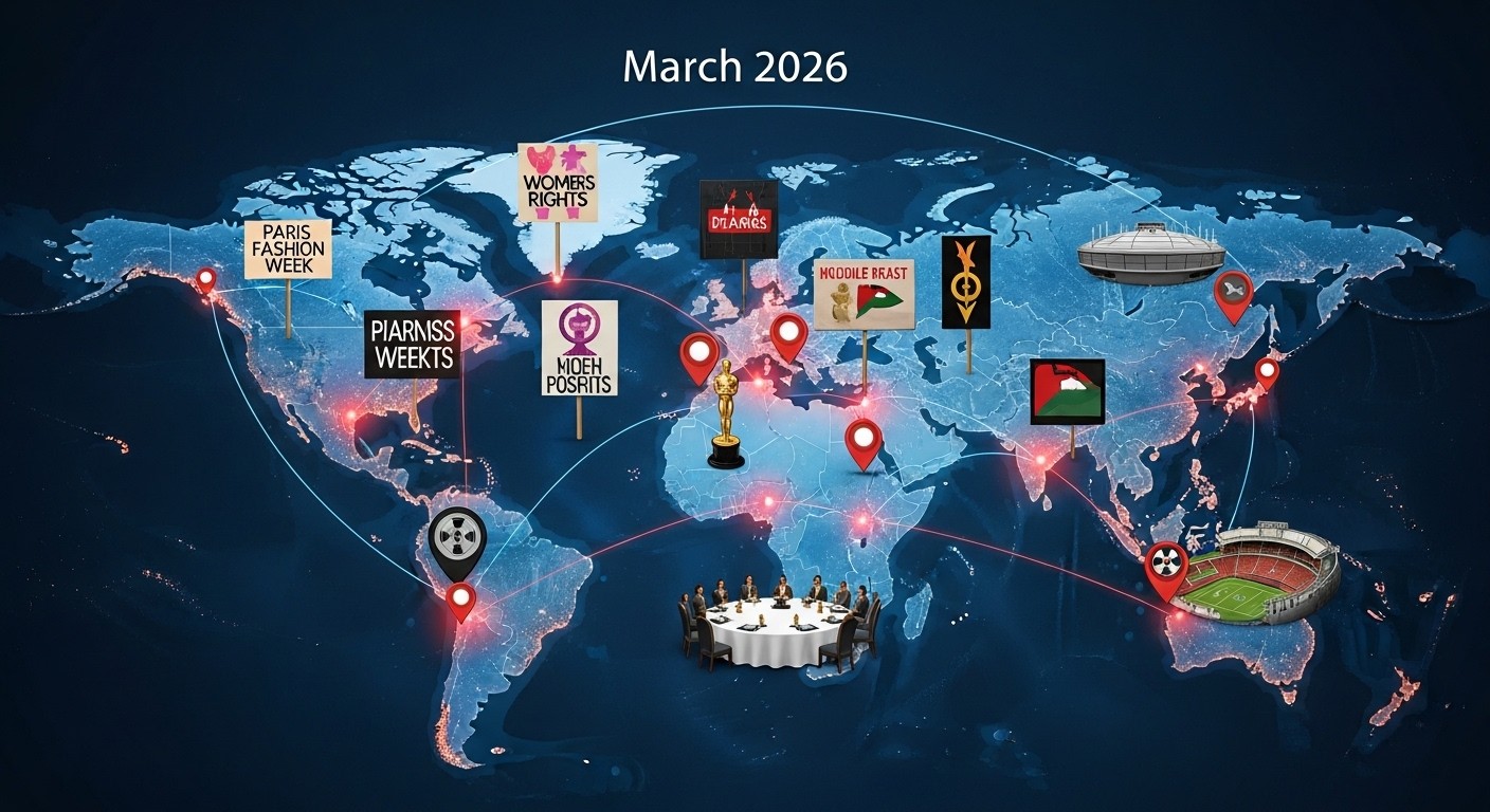 Imaginez une seule semaine où les droits des femmes résonnent dans les rues de plusieurs capitales, où des élections redessinent le paysage politique de pays entiers, où Hollywood couronne ses talents et où des réunions diplomatiques tentent de contenir des conflits brûlants. Du 8 au 16 mars 2026, l’actualité internationale s’annonce particulièrement dense et variée. Entre mobilisations sociales, enjeux économiques, sportifs et culturels, cette période condense de nombreux enjeux contemporains.