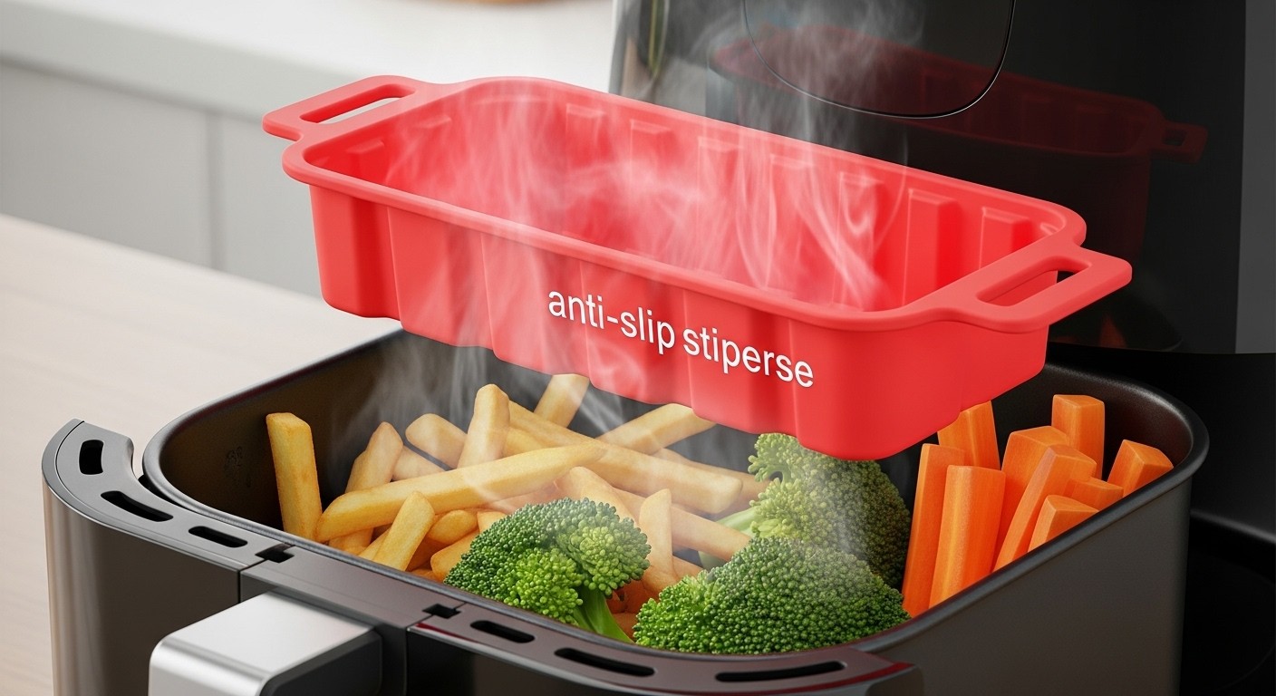Parmi tous les gadgets qui envahissent les cuisines ces dernières années, certains se révèlent être de véritables pépites discrètes. C’est exactement le cas de ce moule rectangulaire en silicone pensé spécifiquement pour les friteuses à air chaud. À première vue, on pourrait le prendre pour un simple petit panier, mais il cumule tellement d’avantages qu’il devient vite indispensable.