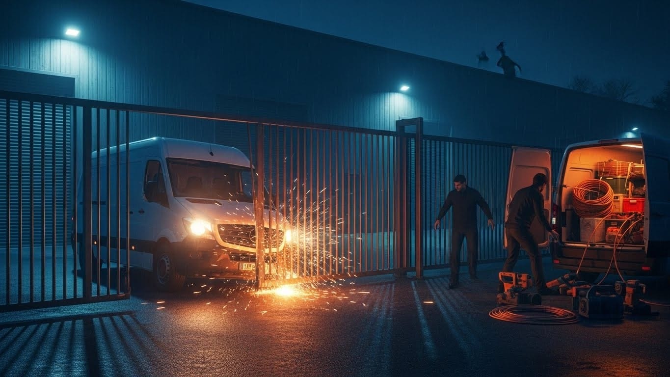 Tout commence par le vol d’un véhicule lourd – souvent un utilitaire ou un fourgon – quelques heures avant l’action. Ensuite, repérage rapide de la cible : entrepôts d’entreprises du BTP, mairies, magasins de bricolage, tout ce qui contient du matériel électroportatif ou des câbles en cuivre.