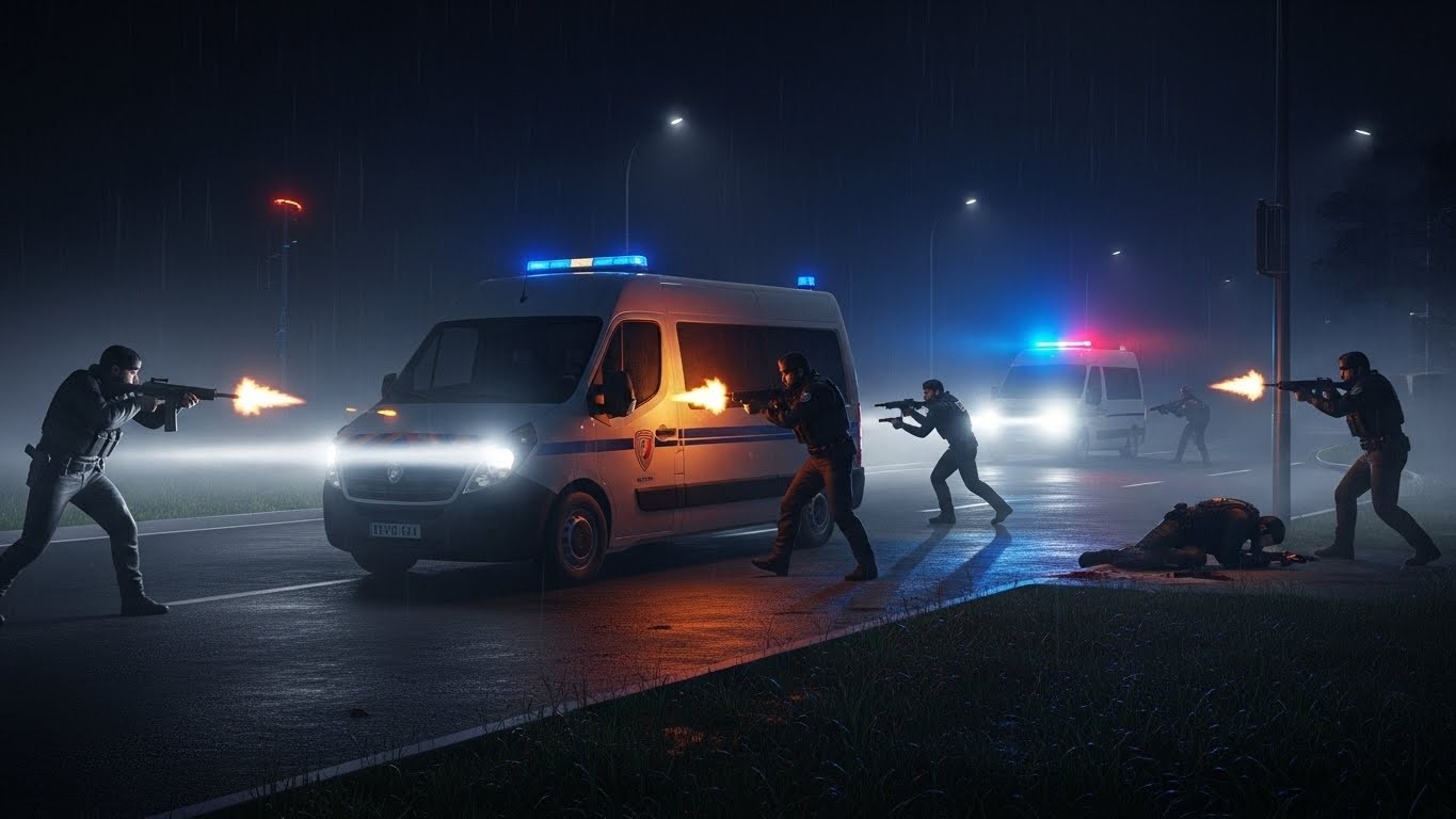 Mais cette fois, la surprise change de camp. Une BMW arrive à toute vitesse, freine brutalement. Cinq individus en sortent, armes à la main. Sans un mot, ils se dirigent droit vers le véhicule des policiers et ouvrent le feu. Les balles fusent, perforent la carrosserie. Les deux agents se retrouvent piégés, acculés dans leur habitacle.