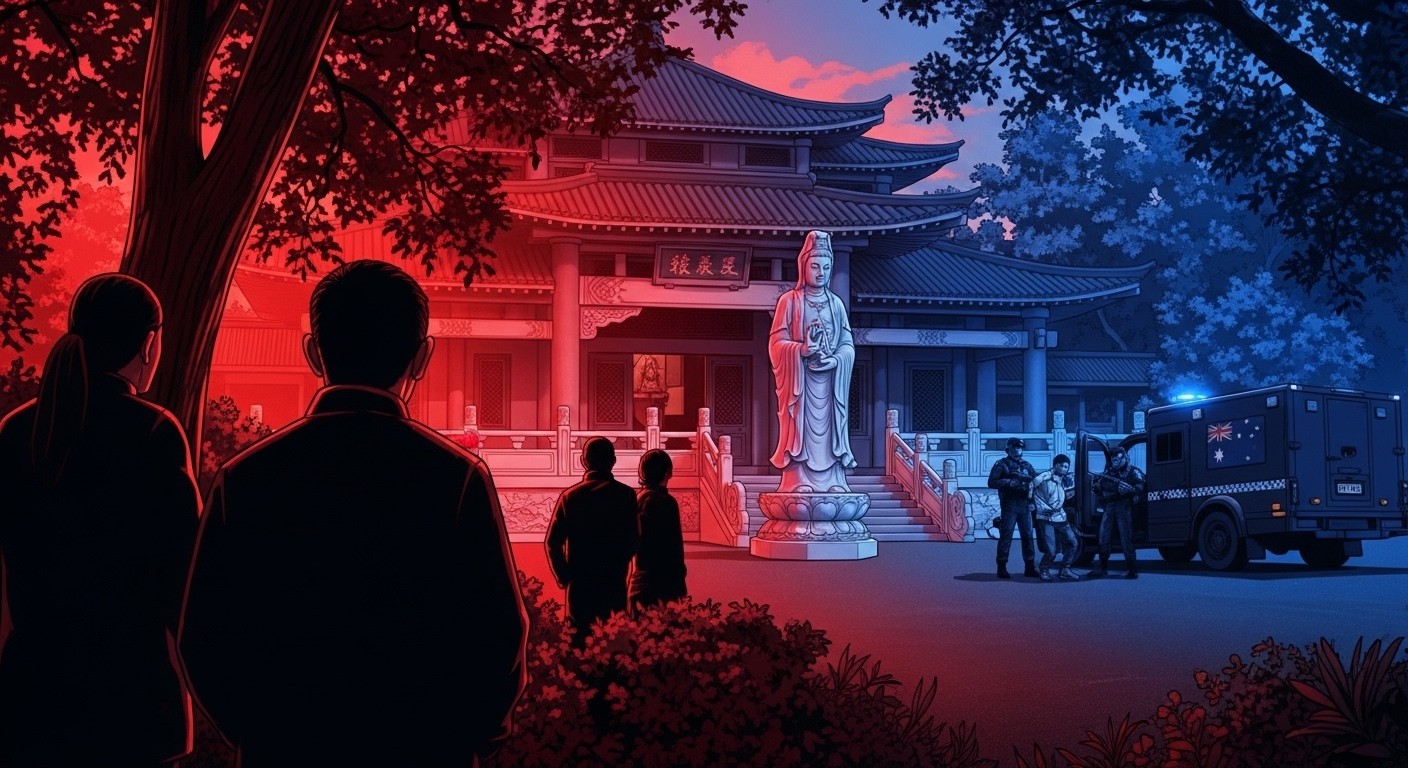 Imaginez une paisible antenne bouddhiste nichée dans la capitale australienne, où des fidèles récitent des prières ancestrales pour trouver la sérénité. Soudain, cette tranquillité est brisée par l’intervention de la police fédérale. Deux jeunes ressortissants chinois se retrouvent au cœur d’une affaire qui secoue les relations entre Canberra et Pékin : l’accusation d’avoir collecté secrètement des informations sur ce groupe religieux pour le compte des autorités chinoises.