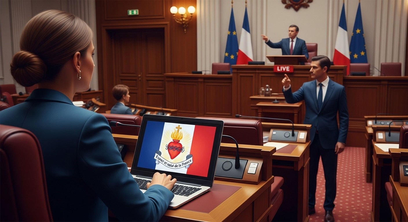 Imaginez une session plénière ordinaire du conseil régional, retransmise en direct, où les débats sur l’avenir de la Bretagne battent leur plein. Soudain, un détail attire tous les regards : sur l’ordinateur portable d’une élue, un petit autocollant aux couleurs du drapeau français. Il porte une inscription simple mais chargée de sens : « Espoir et salut de la France », accompagnée d’un cœur en flammes surmonté d’une croix. Ce qui semblait anodin va rapidement enflammer les esprits et provoquer un rappel à l’ordre officiel du président de l’assemblée.