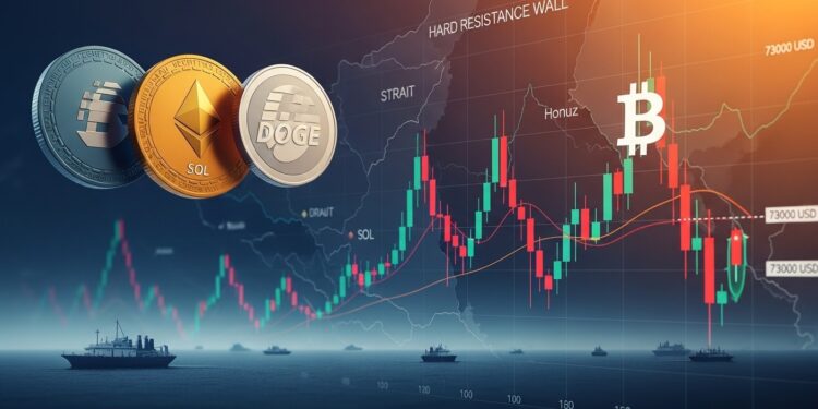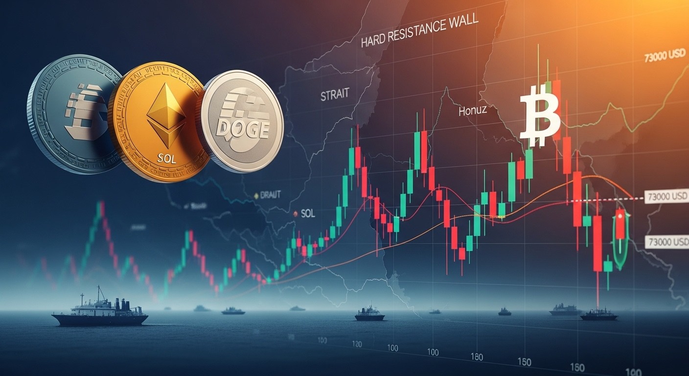 Imaginez un marché entier suspendu à un seul chiffre : 73 000 dollars. Chaque fois que Bitcoin s’en approche, l’enthousiasme monte, les volumes explosent, puis… la chute. Ce scénario s’est répété pour la troisième fois depuis l’annonce du cessez-le-feu entre les États-Unis et l’Iran. Les altcoins comme Ethereum, Solana et Dogecoin en paient immédiatement le prix.