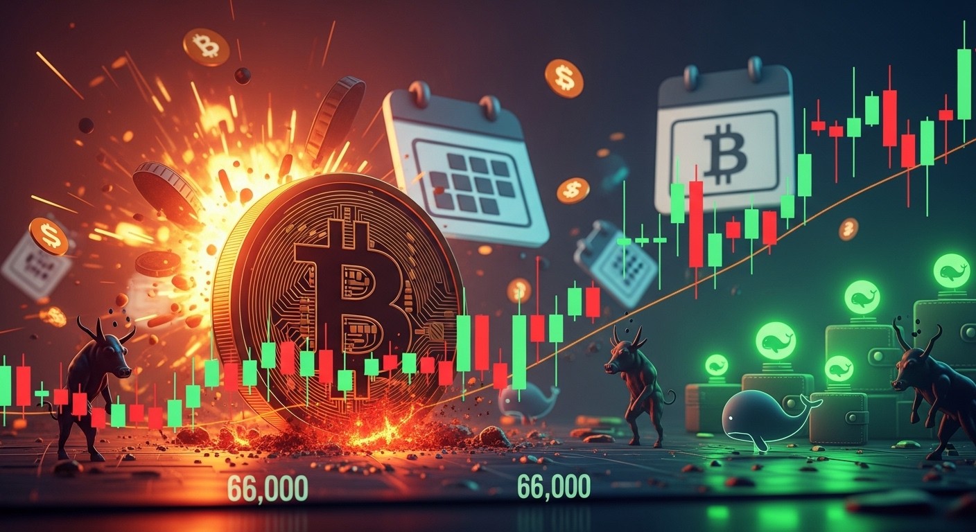 Imaginez un marché entier qui retient son souffle : des milliards de dollars en contrats dérivés arrivent à échéance, des flux d’investissement vacillent, et soudain, le leader incontesté des cryptomonnaies plonge à son niveau le plus faible depuis plusieurs semaines. C’est exactement ce qui s’est produit récemment avec Bitcoin, qui a glissé sous la barre symbolique des 66 000 dollars, semant le doute chez les investisseurs les plus optimistes.
