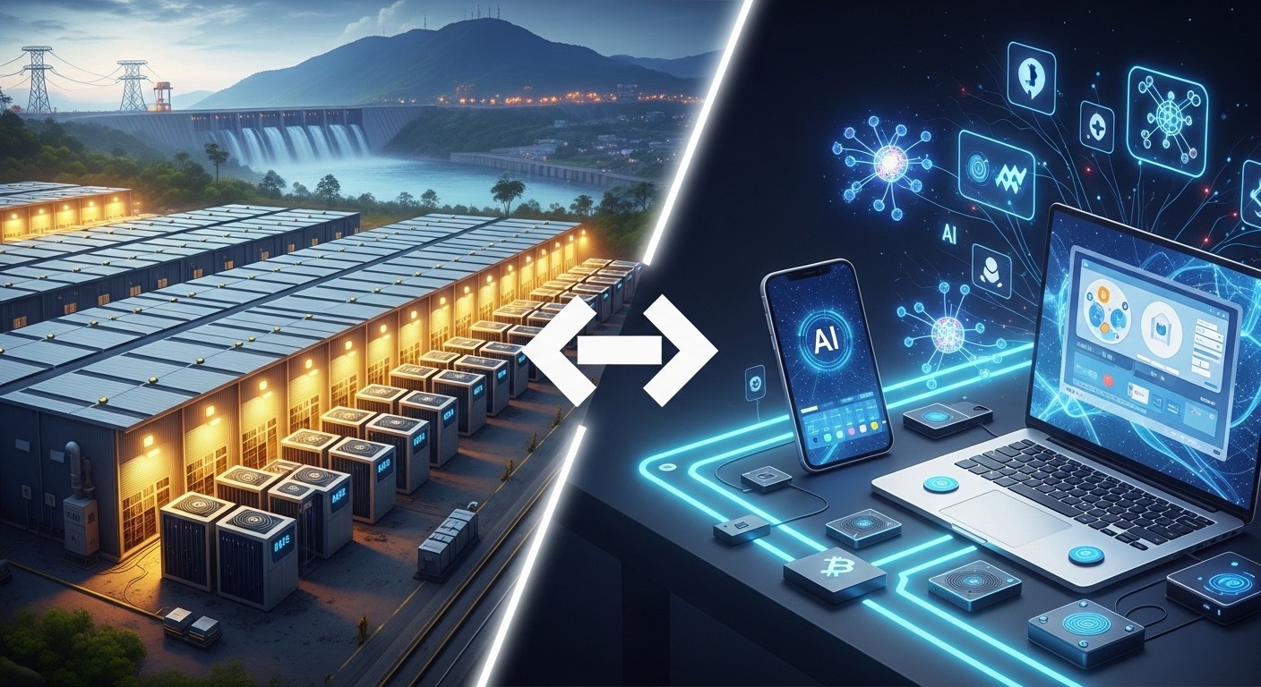 Imaginez un monde où les technologies les plus puissantes de notre époque empruntent des routes radicalement opposées. D’un côté, le minage de Bitcoin, né dans les garages et sur les ordinateurs personnels, s’est transformé en une industrie lourde concentrée dans d’immenses entrepôts. De l’autre, l’intelligence artificielle, actuellement confinée dans des data centers géants et coûteux, semble prête à se libérer pour s’installer directement dans nos poches, sur nos appareils quotidiens. Cette inversion des trajectoires n’est pas seulement fascinante : elle pourrait redéfinir la manière dont nous interagissons avec la puissance computationnelle à l’échelle mondiale.