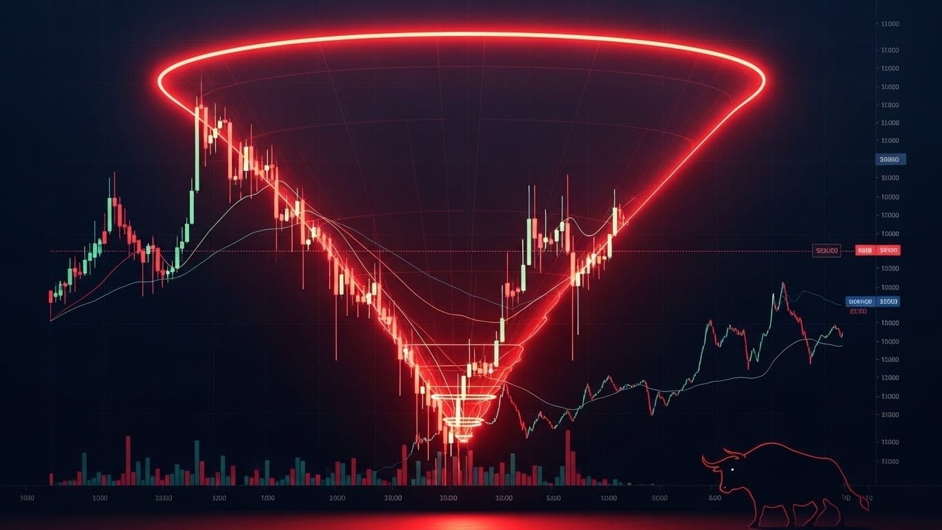 Pour bien comprendre, remontons à mi-avril. Le prix du Bitcoin a d’abord connu une phase de hausse, formant le bord gauche de la tasse inversée. Ensuite, il a progressivement arrondi son mouvement vers le bas, créant cette forme de coupelle retournée. La poignée s’est dessinée récemment avec un rebond technique qui n’a pas réussi à reconquérir les anciens sommets.