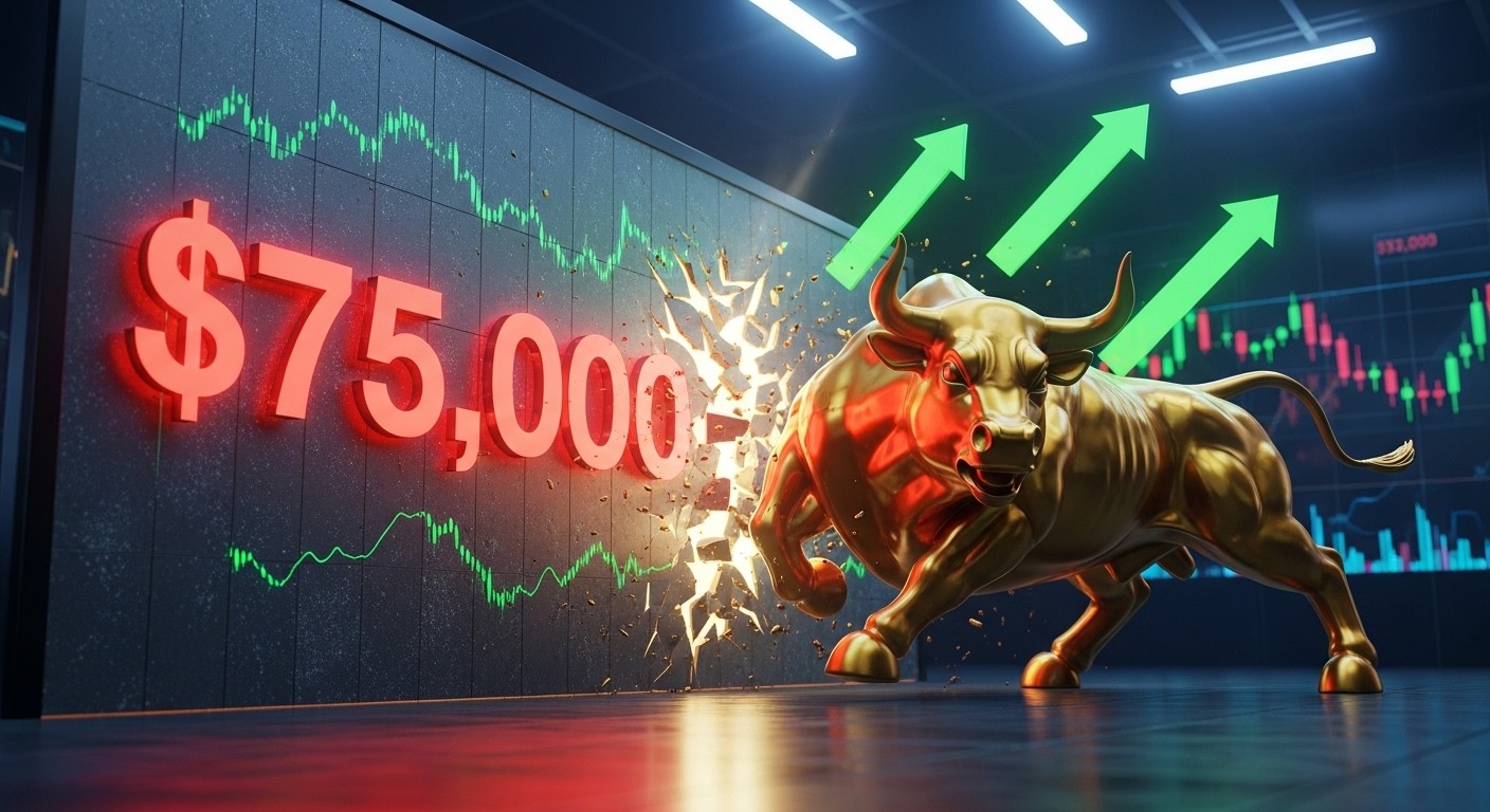 Imaginez un instant : après des semaines de consolidation tendue, le Bitcoin vient une nouvelle fois de flirter avec les 75 000 dollars. Ce seuil psychologique, devenu une véritable ligne de front pour les traders du monde entier, suscite à la fois excitation et prudence. Est-ce le début d’un véritable rallye haussier ou simplement un nouveau test voué à l’échec ?