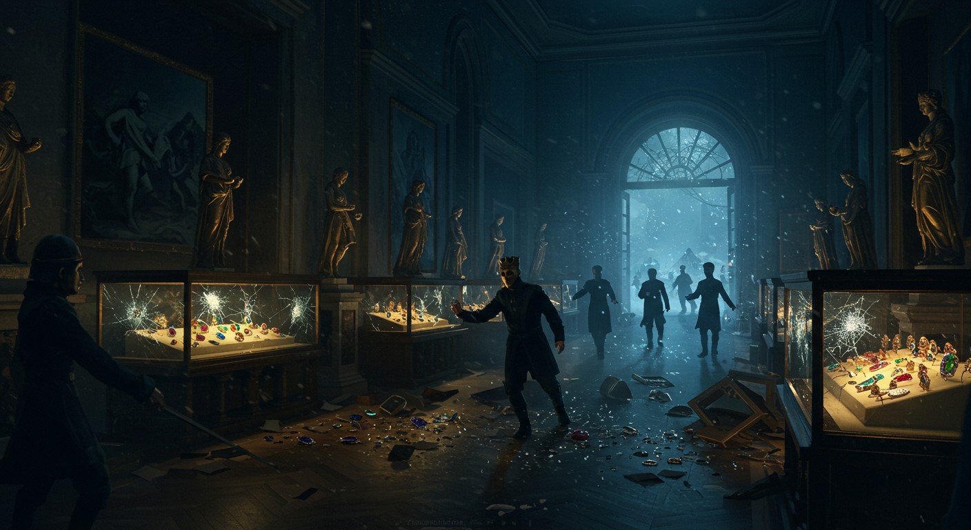 Ce 19 octobre 2025, aux premières heures de la journée, le calme du musée du Louvre est brisé par une opération criminelle d’une précision chirurgicale. Les voleurs, masqués et équipés, ont exploité une faille inattendue : des travaux en cours sur les quais de Seine. En accédant au bâtiment via un monte-charge, ils ont évité les systèmes de sécurité traditionnels, démontrant une connaissance approfondie des lieux. Leur cible ? La galerie d’Apollon, où sont exposés des trésors inestimables, dont une collection de bijoux ayant appartenu à Napoléon et à l’impératrice.