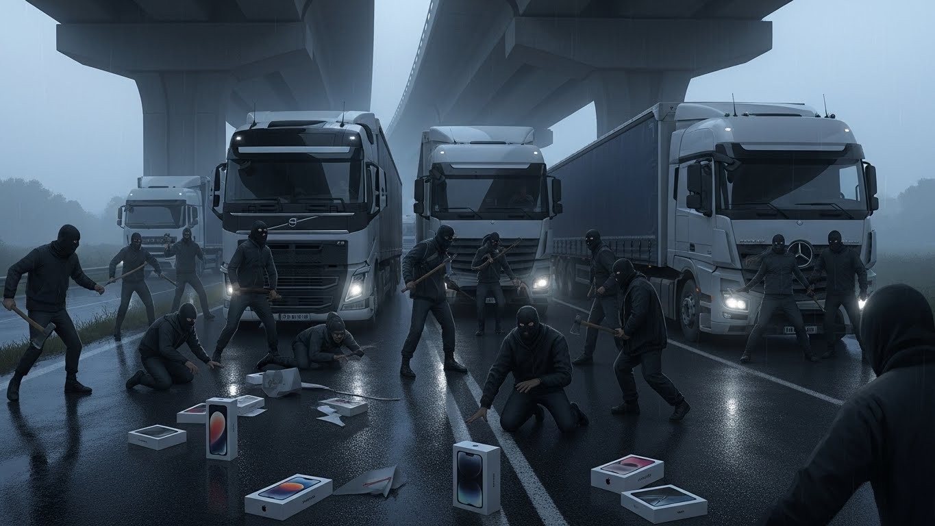 Une dizaine d’individus masqués et armés de haches ont stoppé net deux camions remplis de produits Apple dans le Val-d’Oise. Ligotés, menacés, les chauffeurs ont été forcés de rouler plusieurs kilomètres avant un déchargement sous un pont d’autoroute. Entre 4 et 5 millions d’euros envolés… mais comment une telle opération a-t-elle pu se dérouler ?