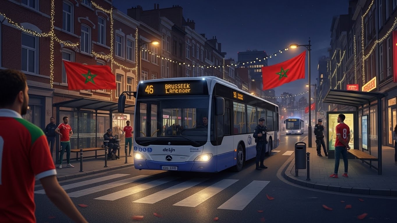 La société flamande de transports en commun a annoncé que plusieurs lignes de bus seraient déviées les soirs de matchs importants du Maroc lors de la CAN 2025. Concrètement, après 21 ou 22 heures, ces bus éviteront certains quartiers du nord de Bruxelles, dont une commune particulièrement touchée.