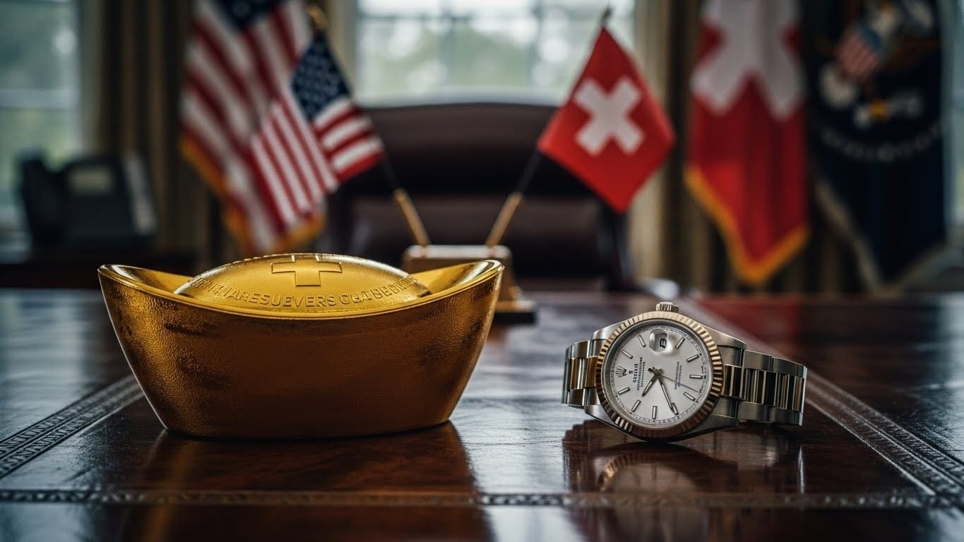 Imaginez la scène : début novembre, dans le Bureau ovale, Donald Trump reçoit une délégation de grands patrons suisses. Sur la table, entre les dossiers, trônent soudain une montre Rolex et un lingot d’or personnalisé. Dix jours plus tard, miracle diplomatique, les droits de douane punitifs de 39 % imposés aux produits helvétiques tombent à 15 %. Simple hasard ou cadeau intéressé ? Deux députés viennent de porter l’affaire devant la justice fédérale.