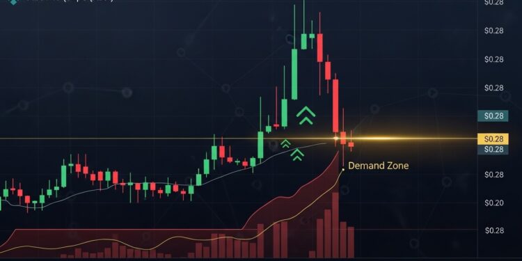 Si les acheteurs arrivent en force près de 0,28 $ et que le volume explose à la hausse sur les bougies vertes, cela constituerait un signal extrêmement puissant d’accumulation.