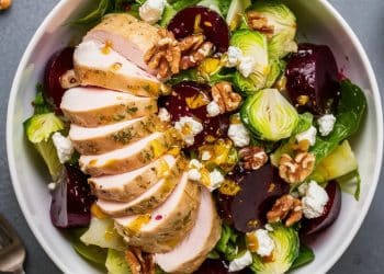 Une salade complète anti-inflammatoire à base de poulet, betteraves rouges,…