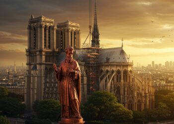 La statue de Saint Paul retrouve sa place sur la flèche de Notre-Dame, un…