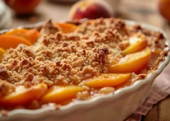 Un crumble aux pêches délicieusement croustillant avec moins de sucre ?…
