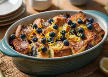 Réveillez vos papilles avec notre casserole lemon-blueberry French toast,…