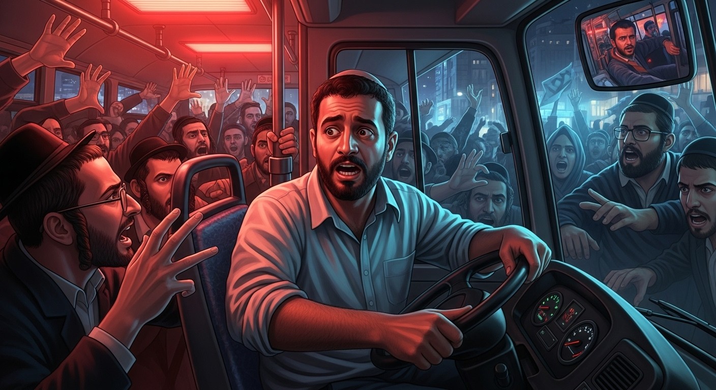 Ce soir-là, près d’une manifestation de juifs ultra-orthodoxes, le bus est rapidement encerclé. Des individus courent vers le véhicule en criant « Arabe ! Arabe ! ». Les insultes fusent, des crachats atteignent le pare-brise. Le chauffeur, terrifié, contacte immédiatement les forces de l’ordre.