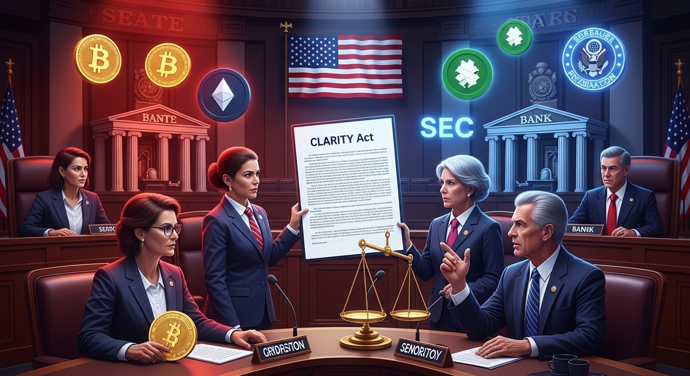 Imaginez un texte de loi capable de redéfinir pour une génération entière les règles du jeu dans l’univers des cryptomonnaies aux États-Unis. Un projet qui pourrait enfin apporter la clarté tant attendue entre la SEC et la CFTC, sécuriser la garde institutionnelle du Bitcoin et ouvrir la voie à une adoption massive par les grands gestionnaires d’actifs. Pourtant, aujourd’hui, ce texte est enlisé dans un combat politique complexe au Sénat. Le CLARITY Act, ce pilier potentiel de la régulation crypto, fait face à un blocage inattendu qui pourrait repousser toute avancée majeure jusqu’après les midterms de 2026, voire au-delà.
