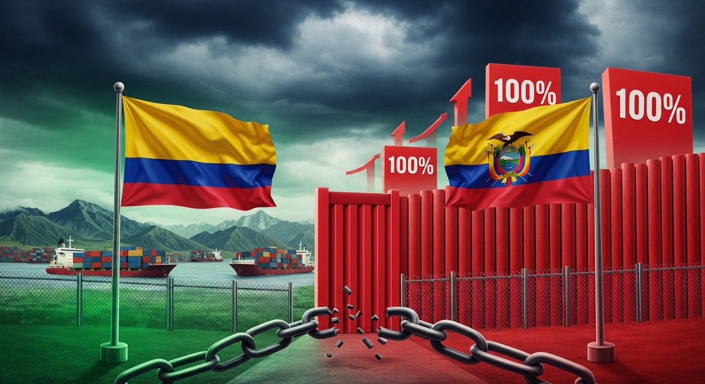 Imaginez deux pays voisins, unis par une longue frontière et une histoire commune, soudain plongés dans un bras de fer économique qui fait grimper les tensions jusqu’à des sommets inédits. C’est exactement ce qui se déroule en ce moment entre la Colombie et l’Equateur, où les droits de douane viennent d’être portés à 100 % de part et d’autre. Cette escalade marque un tournant dans une crise qui mêle questions de sécurité, accusations croisées et divergences politiques profondes.