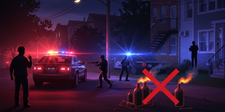 L’homme arrêté, âgé de 26 ans et résidant à Hoboken, fait face à des accusations graves de détention et de fabrication illégales d’engins destructeurs. Concrètement, les enquêteurs ont découvert huit cocktails Molotov prêts à l’emploi chez lui. Ces dispositifs, composés de liquides inflammables et de bouteilles, étaient destinés à être lancés contre une habitation et des véhicules stationnés à proximité.