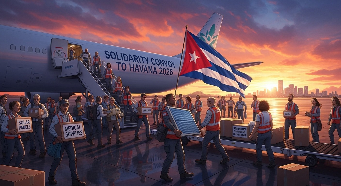 Parti de Miami, ce groupe de 140 participants inclut des militants engagés pour la paix et la justice sociale. Parmi eux, des représentants d’organisations humanitaires portent un message clair : l’aide doit arriver aux populations sans entraves politiques. Les valises et caisses remplies de fournitures médicales, de nourriture et d’équipements alternatifs énergétiques symbolisent un geste concret dans un contexte de grande vulnérabilité.