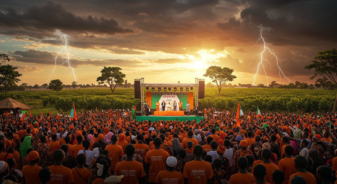 Dans une Côte d’Ivoire où l’effervescence politique atteint son apogée, un nom résonne avec force : Alassane Ouattara. À Daloa, ville stratégique du centre-ouest du pays, le président a donné le coup d’envoi de sa campagne pour un quatrième mandat, avec un objectif clair : un coup K.O, une victoire dès le premier tour de l’élection prévue le 25 octobre 2025. Mais derrière les foules en liesse et les slogans enflammés, des tensions émergent, notamment à Abidjan, où des manifestations ont été réprimées. Quels sont les enjeux de cette élection et que révèle-t-elle du paysage politique ivoirien ?