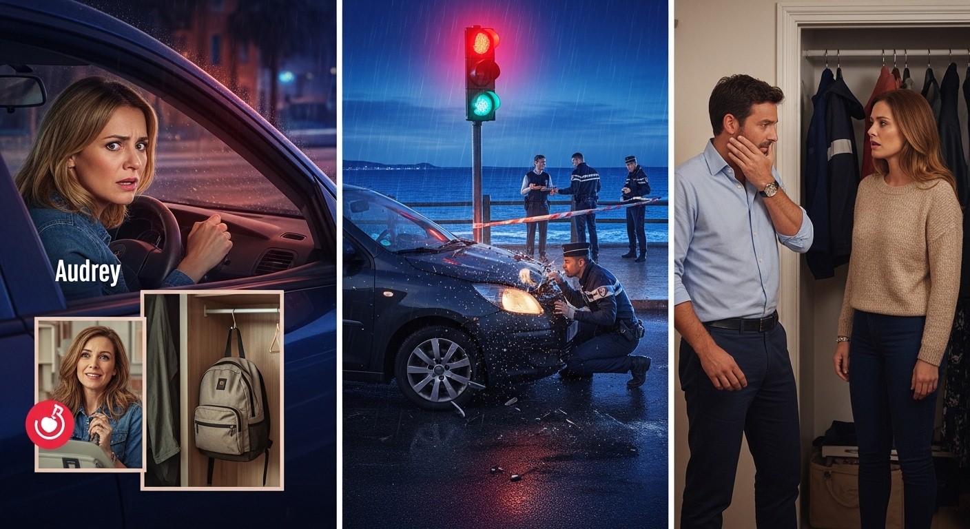 Le comportement d’Audrey interroge : entre départ précipité, tension visible et accident suspect, les pièces du puzzle semblent s’emboîter.
