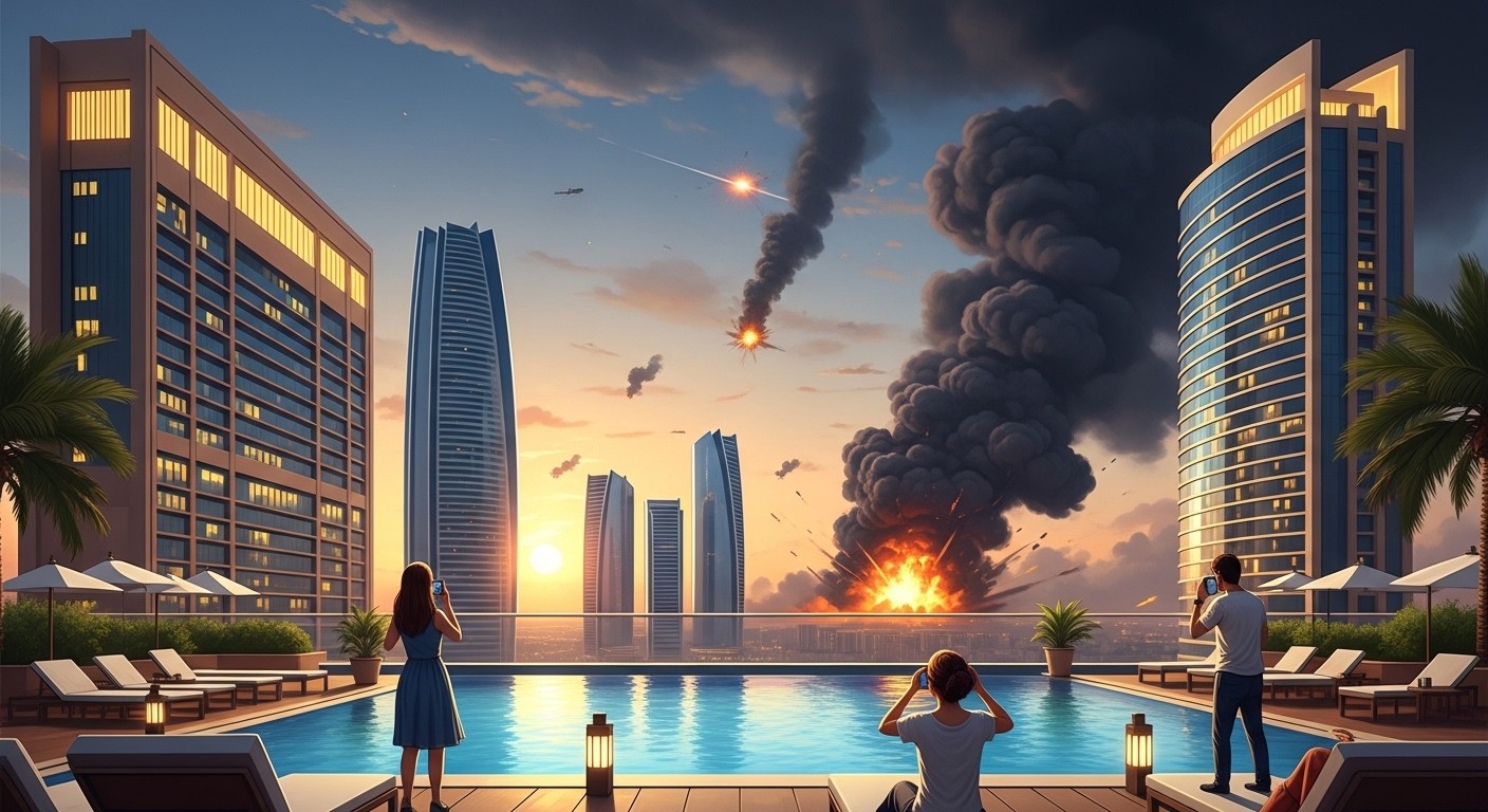 Imaginez-vous allongé au bord d’une piscine infinie, cocktail à la main, tandis que votre téléphone vibre avec des alertes de missiles et que des détonations résonnent au loin. C’est la réalité qu’ont connue de nombreux étrangers bloqués à Abou Dhabi pendant ces jours critiques. Loin d’être au cœur des combats, ils étaient pourtant assez proches pour sentir la menace planer.