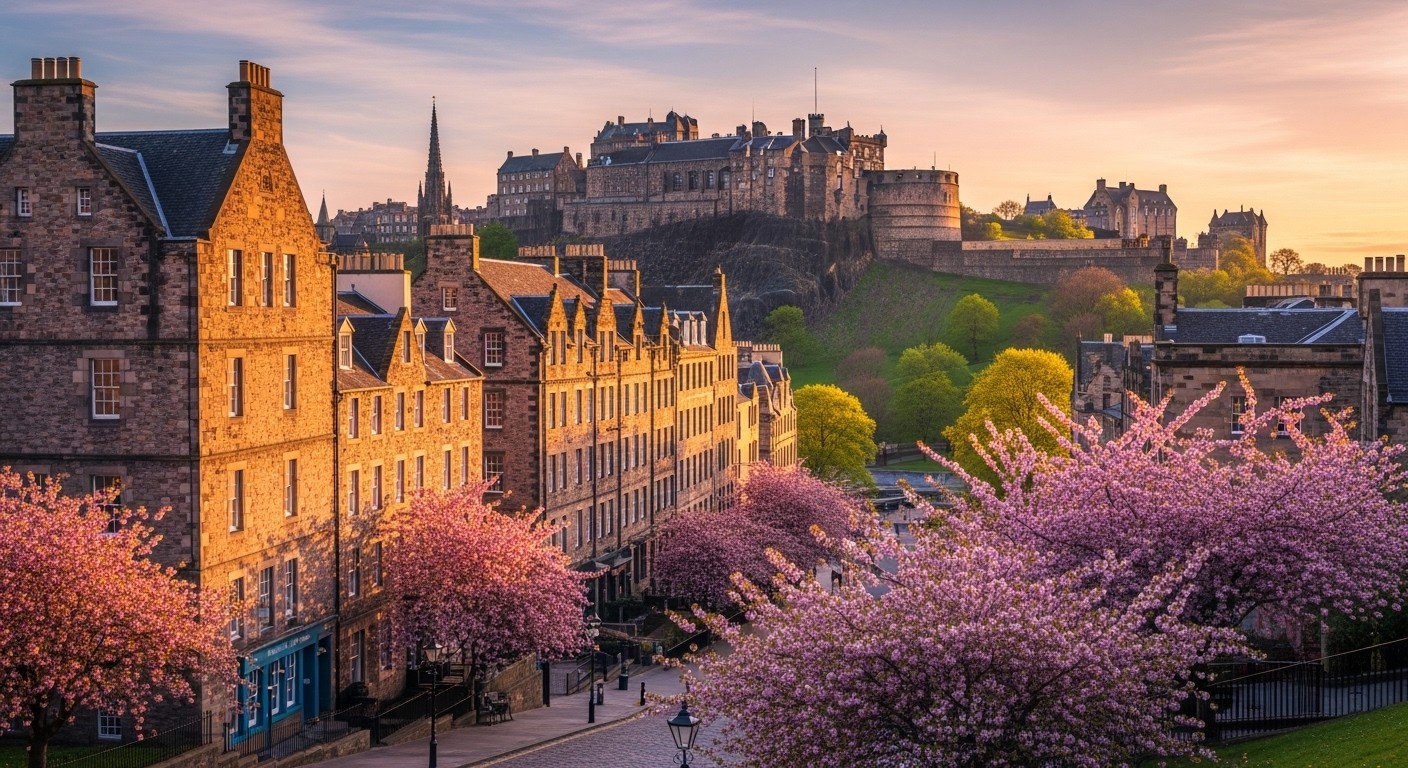 Imaginez-vous marchant sur des pavés plusieurs siècles d’histoire sous un ciel qui oscille entre gris perle et bleu timide, pendant que les premières fleurs sauvages parsèment les flancs verdoyants d’Arthur’s Seat. L’air est frais mais déjà doux, les journées s’étirent jusqu’à plus de vingt-et-une heures et la ville semble enfin sortir de sa longue léthargie hivernale. Bienvenue à Édimbourg en mai : le moment où l’Écosse se décide à sourire.