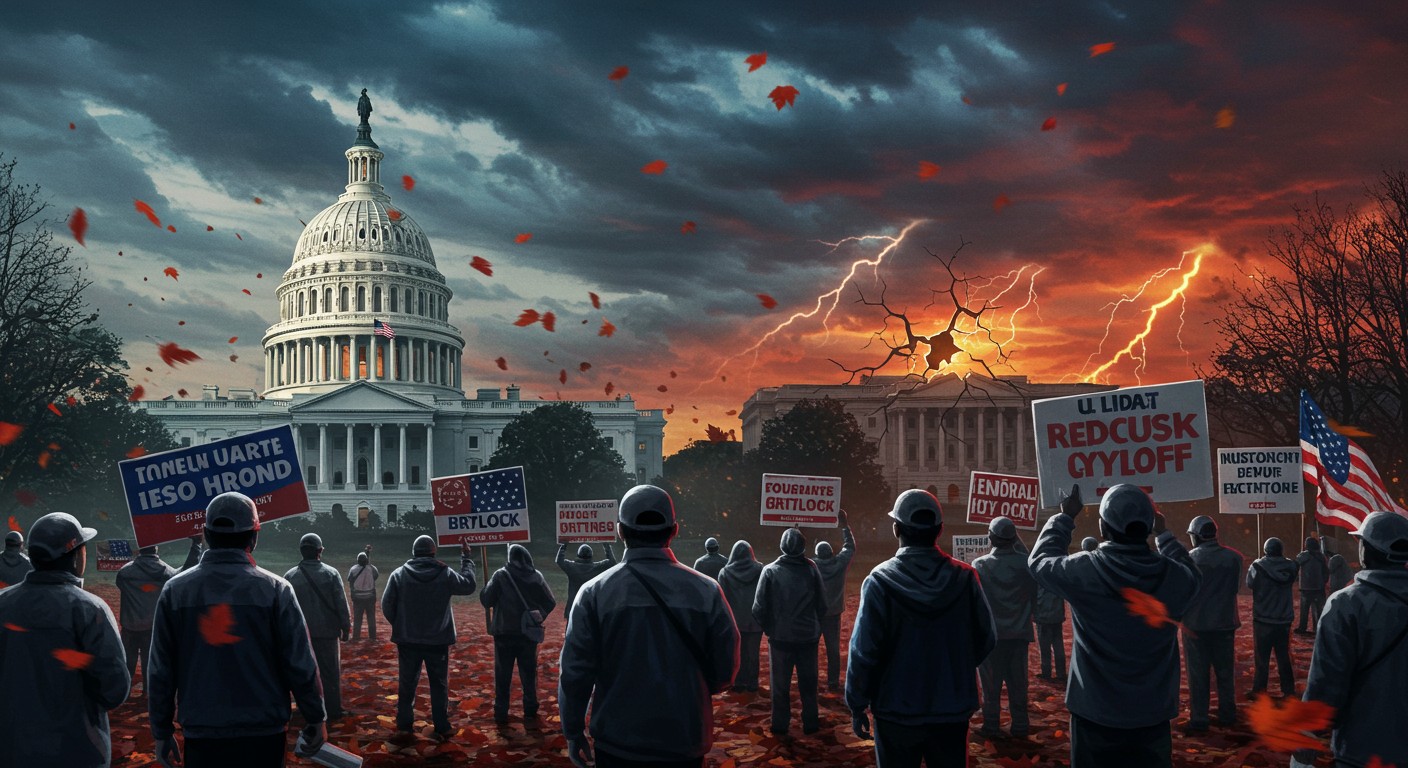 Imaginez un instant : des milliers de familles américaines se réveillent avec l’angoisse d’un chèque manquant, des aéroports bondés paralysés par le manque de personnel, et au cœur de tout cela, un président qui appuie sur le bouton des licenciements massifs. C’est la réalité qui frappe les États-Unis en ce début octobre 2025, où le blocage budgétaire, ou shutdown, s’enlise dans une impasse politique explosive. Ce n’est plus une simple querelle de couloir au Congrès ; c’est une crise qui pourrait redessiner les contours de la démocratie américaine, avec des répercussions bien au-delà des frontières.