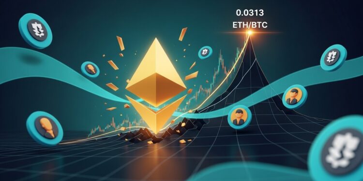 Imaginez un marché où le géant Bitcoin semble intouchable depuis des mois, attirant tous les regards et les capitaux. Puis, soudain, Ethereum montre des signes de réveil. Le ratio ETH/BTC vient d’atteindre 0,0313, son niveau le plus élevé depuis janvier 2026. Ce mouvement discret mais significatif pourrait marquer le début d’un changement de dynamique dans l’univers des cryptomonnaies.