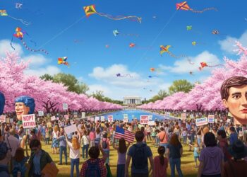 Actualités Manifestation No Kings à Washington : Cerisiers en Fleurs et Cerfs-Volants Colorent la Contestation