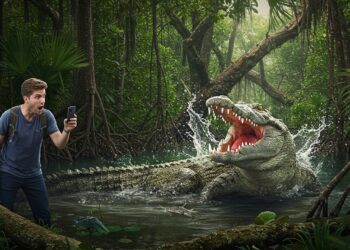 Un touriste escalade une clôture pour un selfie avec un crocodile, pensant…