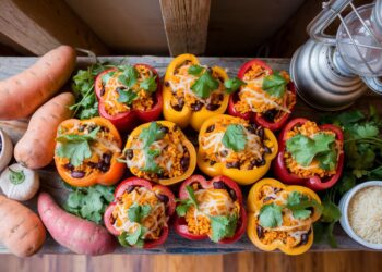 Un délice végétarien à partager sans modération : nos poivrons farcis au…