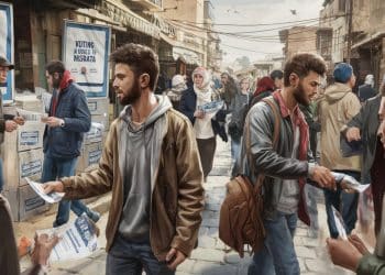 A Misrata, des jeunes distribuent des tracts et échangent avec les…