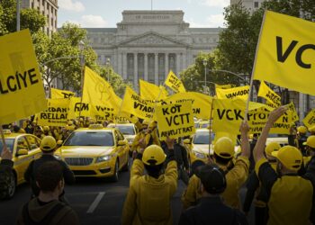 Les taxis bloquent les rues pour dénoncer les VTC et la réforme sanitaire.…