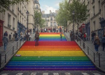 Dans la nuit, des escaliers arc-en-ciel à Paris sont repeints en blanc.…