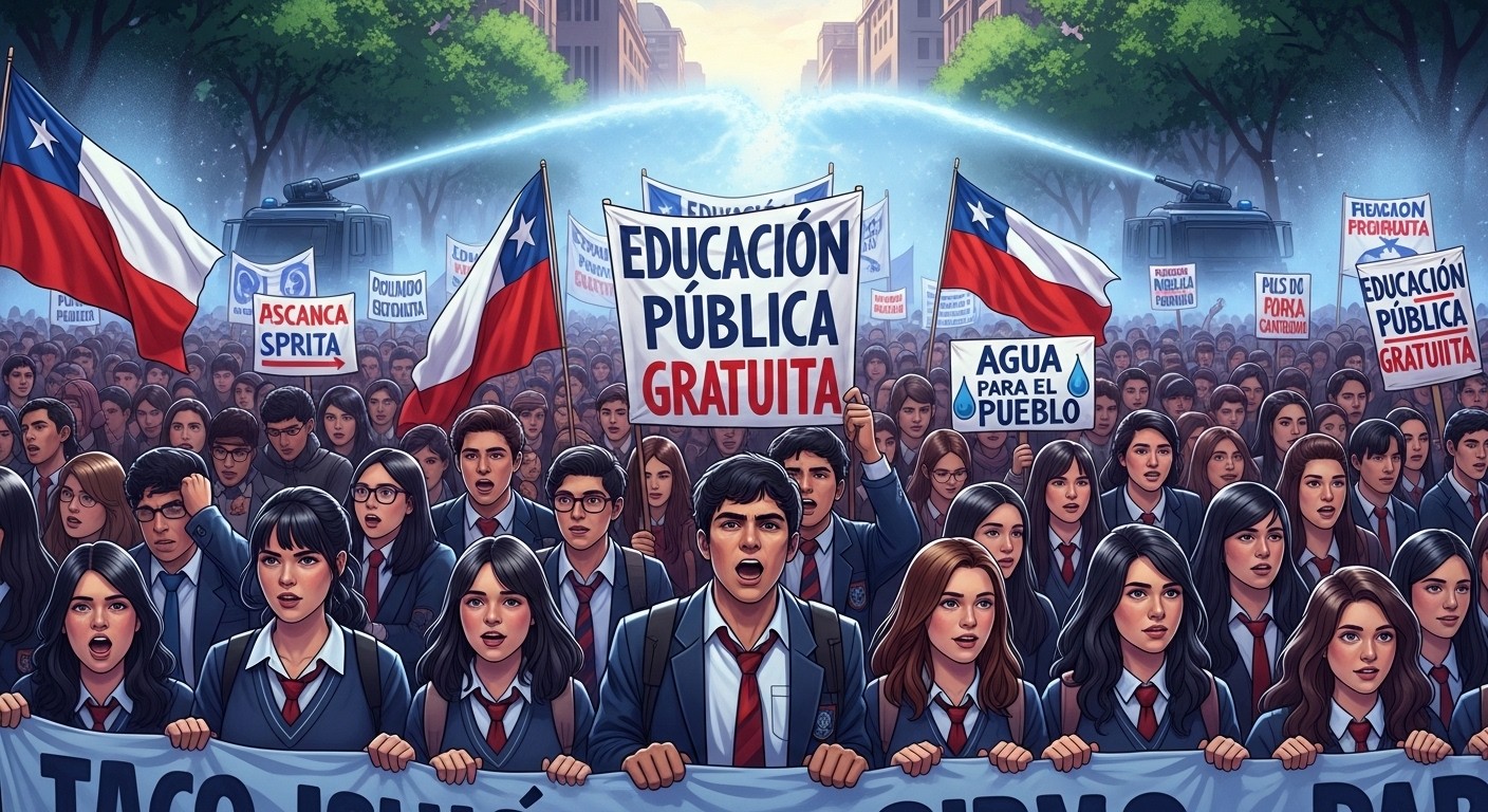 Les lycéens en uniforme, présents en nombre lors de la marche, symbolisent l’engagement précoce d’une génération qui refuse de voir ses perspectives d’avenir compromises. Leur présence massive témoigne de la profondeur du sentiment partagé au sein de la jeunesse chilienne.