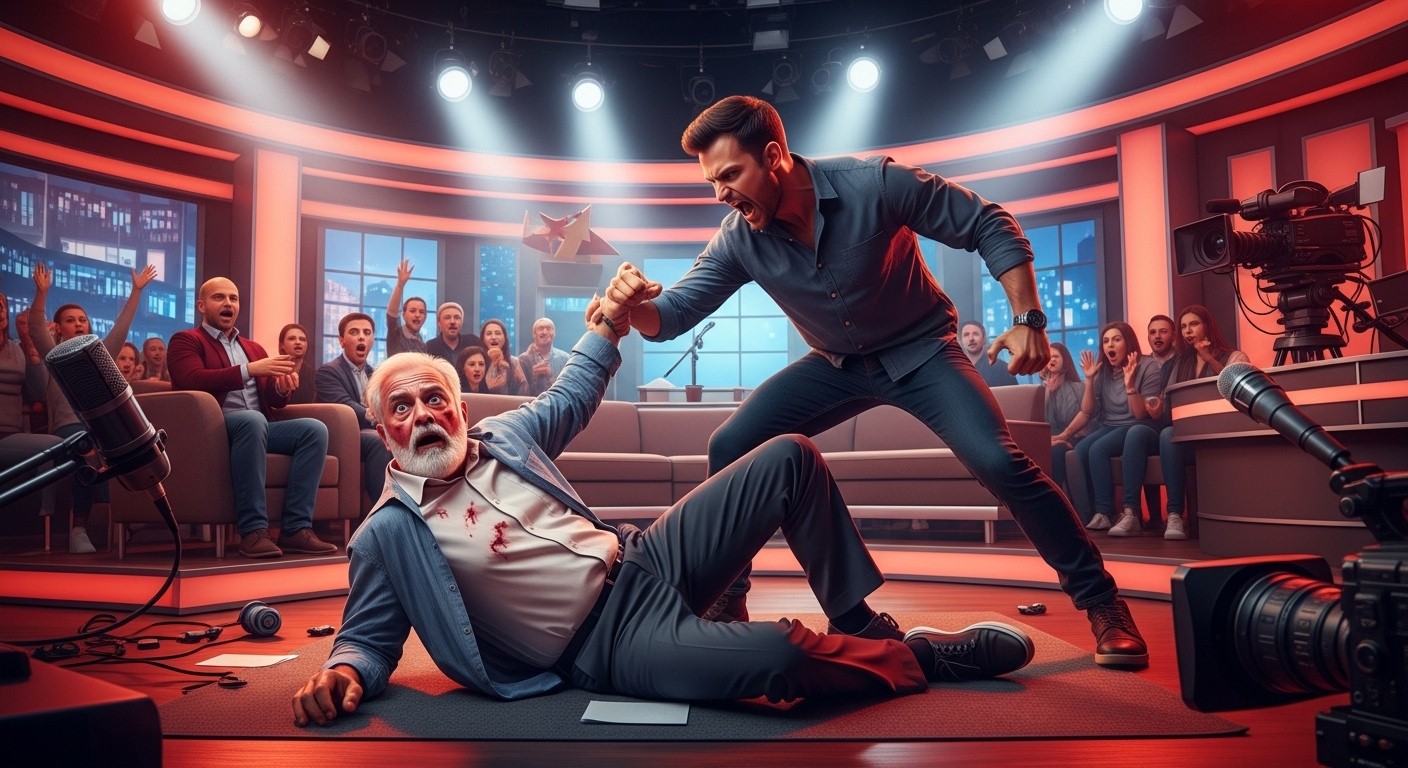 Imaginez un plateau de télévision animé, des chroniqueurs qui débattent avec passion, des rires qui fusent et soudain, pendant une simple coupure publicitaire, la tension explose en une scène d’une rare violence. C’est exactement ce qui s’est produit récemment lors d’une émission populaire, où un chroniqueur expérimenté s’est retrouvé au sol après avoir été frappé par un invité connu pour son tempérament fougueux.