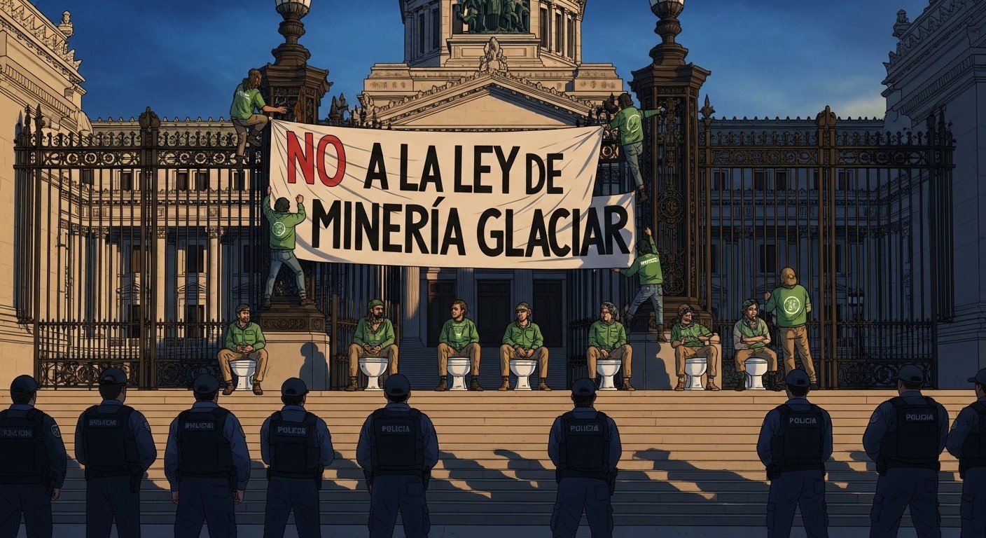 Des militants de Greenpeace ont escaladé les grilles du Parlement argentin, déployant une banderole choc et s'asseyant sur des toilettes en plastique pour alerter sur une réforme menaçant les glaciers. Dix interpellations ont suivi, alors que le Sénat débat d'un assouplissement controversé. Mais que cache vraiment ce projet ?
