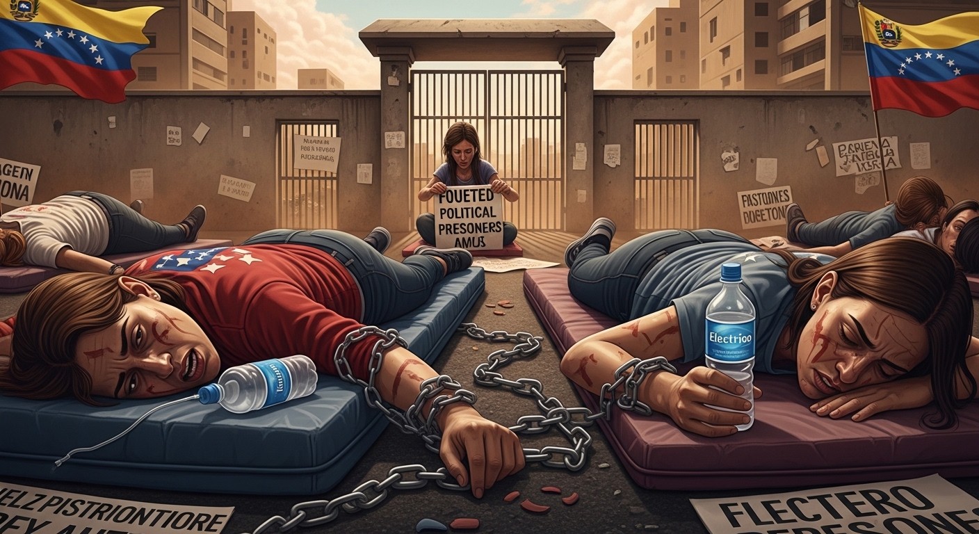 Imaginez une scène où la fatigue et la détermination se mêlent sous un soleil impitoyable. Devant l’entrée d’une prison à Caracas, une poignée de femmes reposent sur de simples matelas posés à même le sol. Leurs visages marqués par l’épuisement trahissent des nuits sans sommeil et des jours sans nourriture. Elles sont là depuis plusieurs jours, refusant toute alimentation solide pour faire entendre leur cri : libérer les détenus politiques enfermés derrière ces murs.