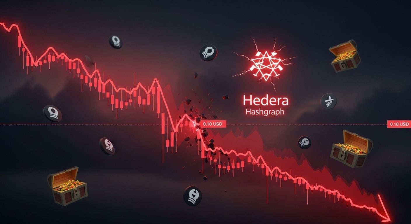 Depuis son point haut de juillet 2025 à environ 0,3045 $, HBAR a perdu près de 65 % de sa valeur. Une telle dépréciation ne s’explique pas uniquement par la faiblesse générale du marché. D’autres altcoins ont certes corrigé, mais peu affichent une trajectoire aussi unilatéralement baissière sur une période aussi longue. Cette faiblesse relative pose question : le réseau Hedera traverse-t-il une crise passagère ou assistons-nous à un changement structurel plus profond ?