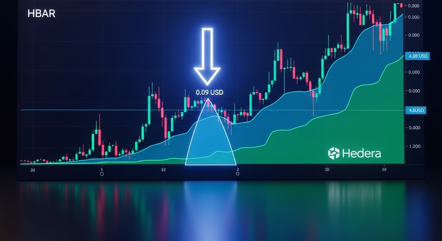 La formation se compose typiquement d’une épaule gauche, d’une tête plus basse marquant le point le plus faible, puis d’une épaule droite symétrique. La ligne reliant les sommets intermédiaires, appelée neckline ou ligne de cou, représente la résistance décisive. Pour Hedera, cette neckline se situe précisément aux alentours de 0,09 dollar, un niveau qui coïncide également avec une zone de résistance significative sur les graphiques hebdomadaires et mensuels.