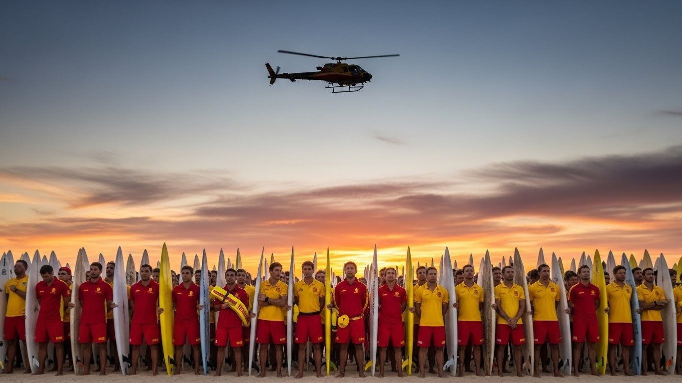 Les sauveteurs en mer, équipés de leurs planches de surf et vêtus de leurs uniformes distinctifs, ont formé un rassemblement impressionnant. Bondi, cette plage légendaire qui incarne le mode de vie australien, est devenue le théâtre d’un hommage solennel. Ils ont observé ces trois minutes de silence, un acte qui résonne bien au-delà des sables.