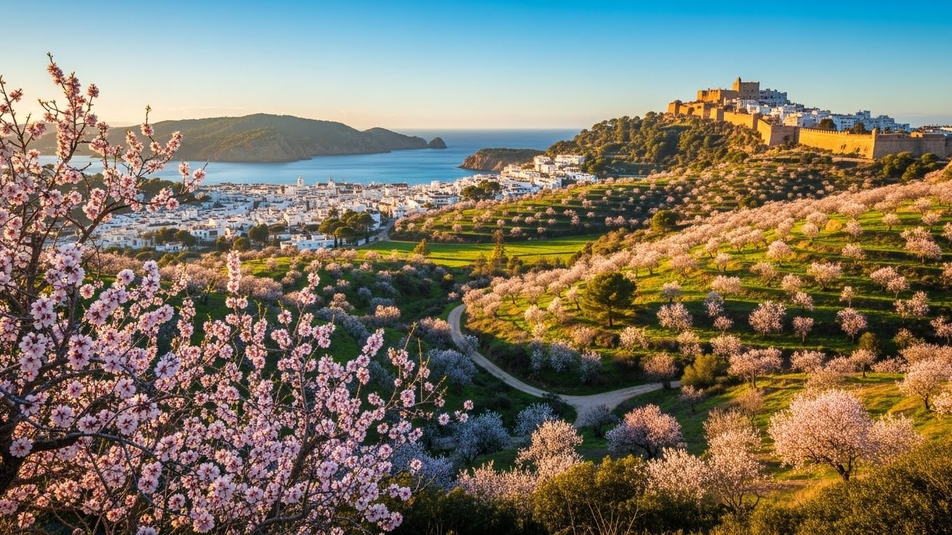 Février coïncide avec la floraison spectaculaire des amandiers, particulièrement autour de Santa Agnès de Corona. Les plateaux et vallées se couvrent d’un tapis blanc et rose délicat, créant un paysage féerique qui attire les photographes du monde entier.