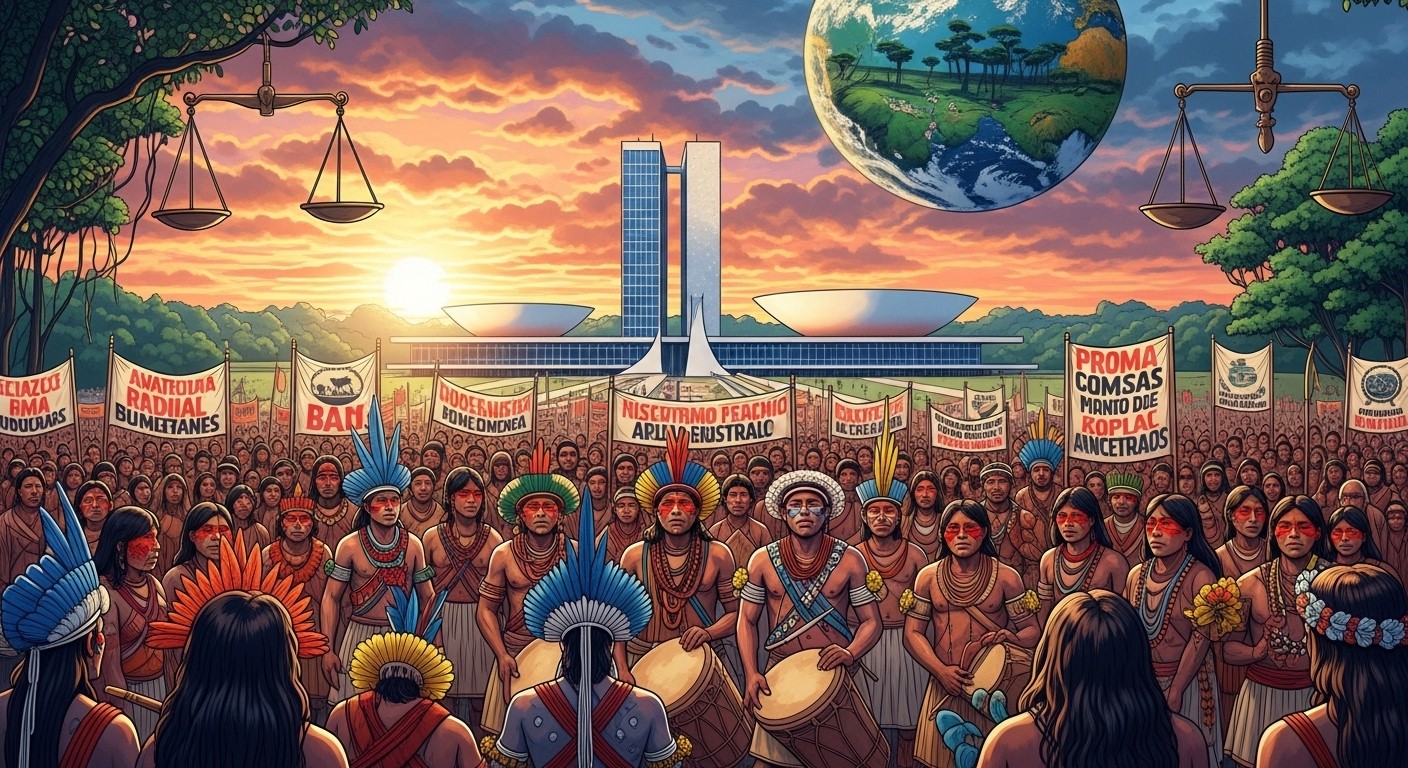 Imaginez des milliers de voix s’élevant en chœur au cœur du pouvoir brésilien, rythmées par des tambours ancestraux et des danses traditionnelles. Ce spectacle n’est pas une simple fête culturelle, mais une mobilisation déterminée pour défendre un droit fondamental : celui de vivre sur les terres de ses ancêtres. À Brasilia, la capitale futuriste du Brésil, des militants venus de tout le pays, souvent après de longs voyages en bus ou en bateau, ont pris place sur l’Esplanade des Ministères pour une assemblée qui dure plusieurs jours.